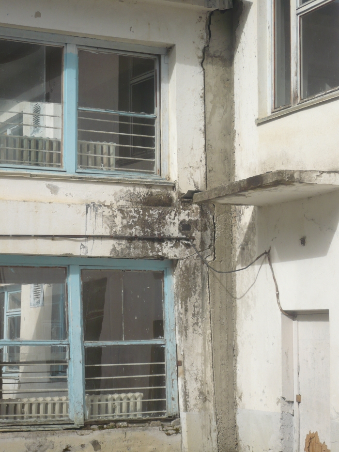 Однако, окна то тут, то там открыты, через них видно, что ВСЁ оборудование и инвентарь вывезены, комнаты стоят абсолютно пустые