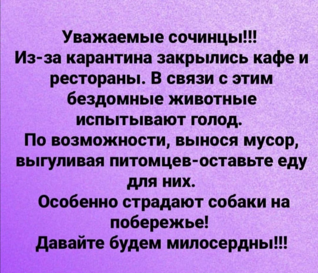 По городу ездят машины — «страшилки» с ужасно хрипящими громкоговорителями и вещают чтоб все сидели дома… Разобрать что-то из них конечно можно только с трудом! Однако же всех владельцев личного транспорта этот карантин ни как не касается. Поток автомобилей по ул.Транспортной, по которой я возвращался домой, плотный как в обычный день. Все куда то едут, у всех дела — заботы… и только малоимущие жители Сочи цепочкой бредут вдоль набережной с тоской глядя на счастливых обладателей личного авто, которые кстати говоря ездят с облегчением по дорогам города, освобожденных от автобусов и маршруток…