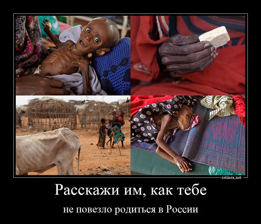 Ты. вечно недовольное существо посмотри, сколько людей, миллиардов людей, живёт в убогих условиях, погрязнув в грязи и не имея никаких благ от государства.
