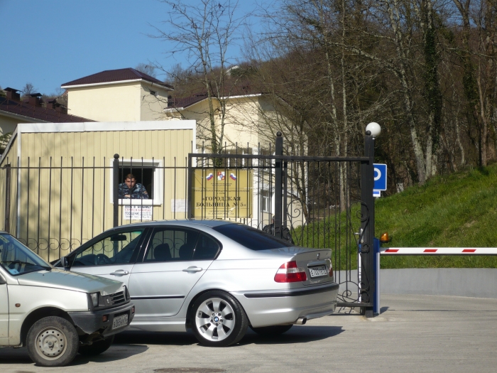 Даже если не брать в расчёт убогую дорогу, больница вроде нормальная, но огромный минус — отсутствие парковки вне КПП. Был там два раза, спасало только одно — по волшебным обстоятельствам было свободно одно место, а так там развернуться можно только если с заездом на дорогу уходящую вправо, но этот вариант не подходит для машин с клиренсом ниже УАЗовского, уж больно круто она уходит вверх