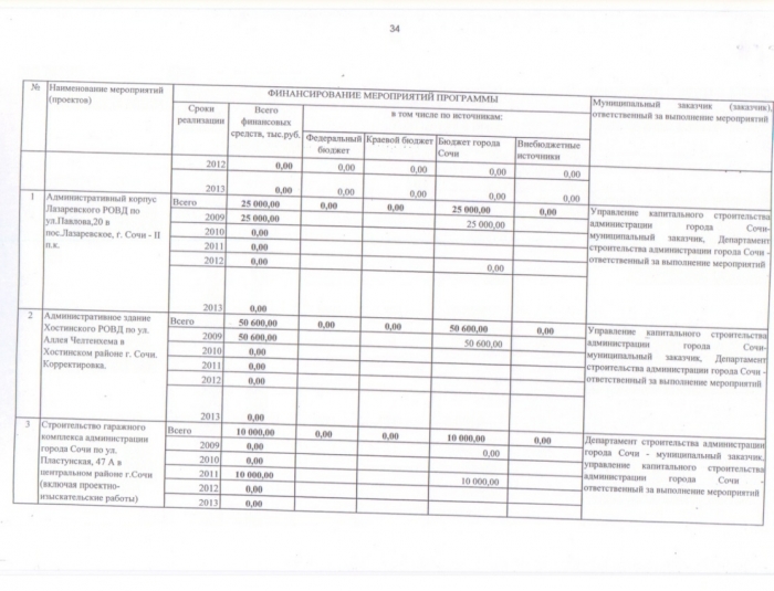 Очень интересный подраздел программы «Мероприятия общепрограммного характера»… По программе было заложено 201 600 тыс.руб, из них ремонт РОВД в Лазаревском — 25 000тыс.руб, строительство Хостинского РОВД — 50 600 тыс.руб и строительство городского архива на Юных Ленинцев — 126 000,00 тыс.руб…