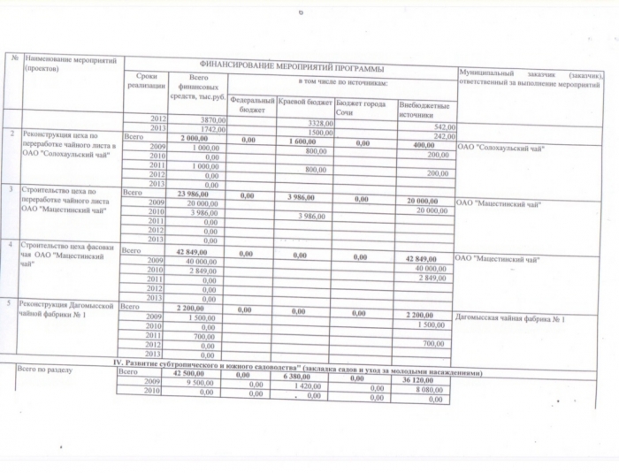Вызвал интерес и пункт под названием «Развитие субтропического и южного садоводства», кто и где будет закладывать те сады? Без адреса и исполнителя… Тем не менее подпрограмму уменьшили на 20%…