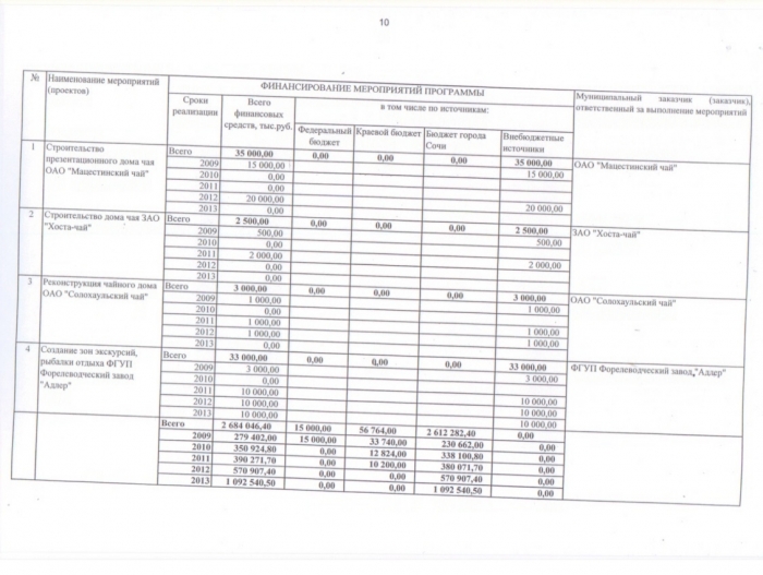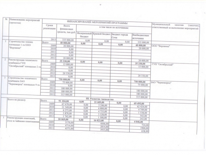 Хостинский район было всего: 945 687,80 тыс.руб, из них: крематорий-церковь-кладбище- 30 030,70тыс.руб, с.Пластунка — 201 430,20 тыс.руб, с.Прогресс — 80 887,50 тыс.руб, с.Краево-Армянское и с.Верховское — 55 428,10 тыс.руб, с. Измайловка и с. Семёновка — 104 540,0 тыс.руб, 3я бригада (Раздольное)- 62 756,10 тыс.руб, с.Раздольное — 144 248,10тыс.руб, с. Богушовка — 266 367,10 тыс.руб., сокращение на 70%;