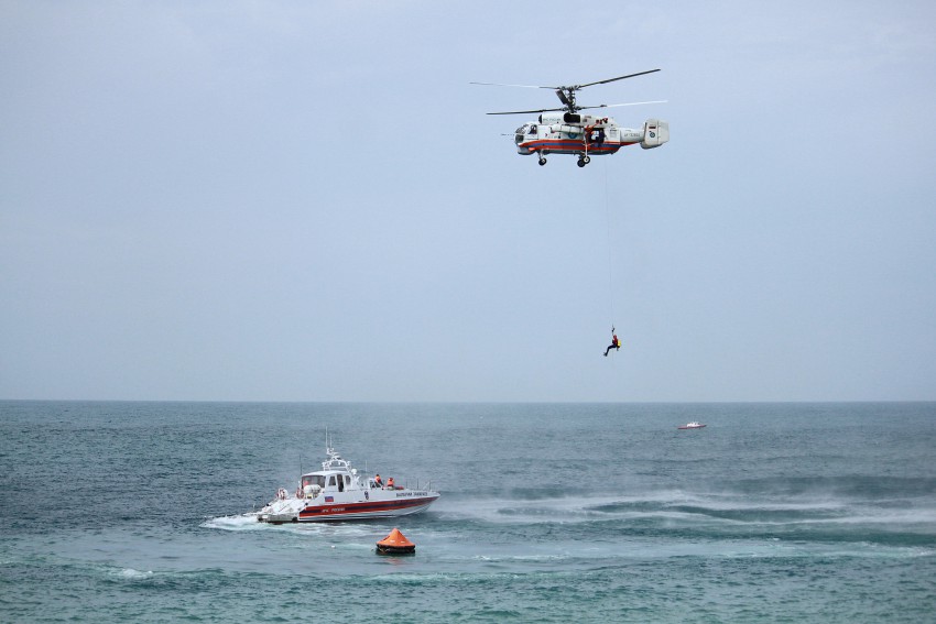 В район чрезвычайной ситуации вылетает вертолет КА-32, экипаж которого оценивает обстановку и сообщает ее в спасотряд, затем по линии оперативных дежурных доклад передается старшему оперативному дежурному Южного регионального центра МЧС России.