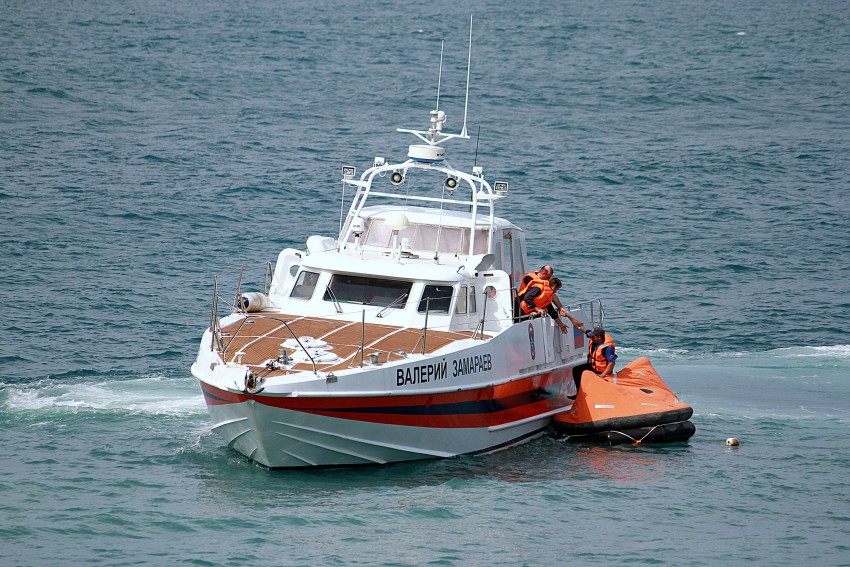 Из порта города Туапсе в район ЧС для поиска потерпевших крушение и оказания им помощи приходит многоцелевой катер «Валерий Замараев».
