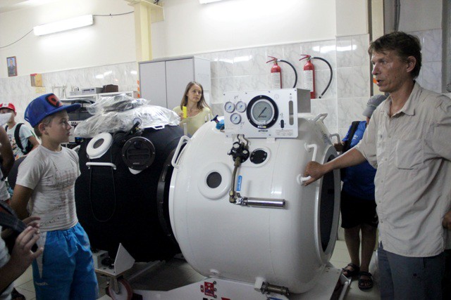 Показали юным спортсменам и расположенный на территории Центрального подразделения барокомплекс. Две барокамеры – стационарная и транспортная, являются лучшими в регионе и одними из лучших в стране. Именно благодаря ним спасатели восстанавливаются после тяжелых глубоководных спусков и подъемов.