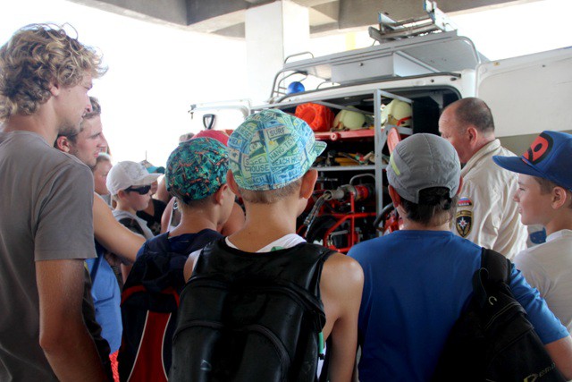 Ответил врач МЧС и на возникший после беседы вопрос юных спортсменов, что делать, если в воде свело мышцу.