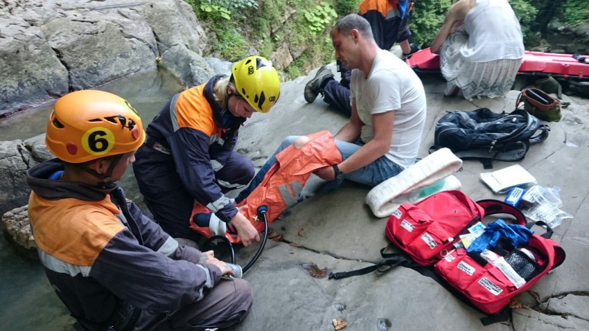 По рассказам самого пострадавшего, он оступился на скользких камнях и упал. По предварительному диагнозу, 40-летний сочинец получил перелом голени.