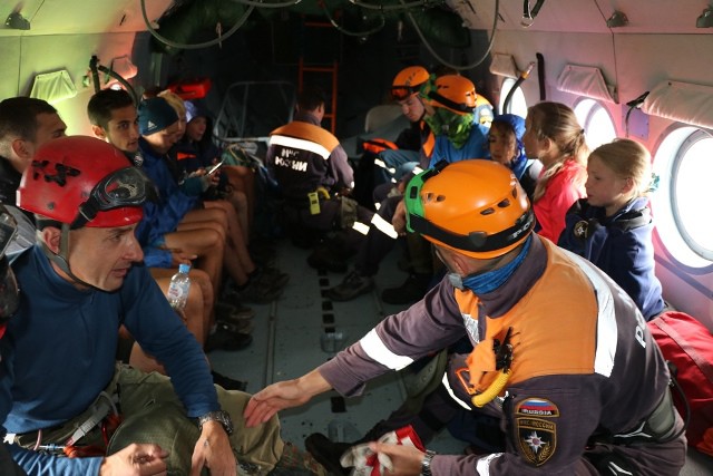 В 12.07 к месту нахождения группы вылетел вертолет Ми-8 МЧС России со спасателями ЮРПСО на борту. Заблудившихся туристов удалось обнаружить с воздуха, они стояли на открытом участке местности и махали руками. С применением бортовой лебедки и спасательной косынки всех туристов подняли на борт воздушного судна. Спасатели надели на детей теплые куртки, угостили шоколадками и яблоками. Туристов эвакуировали в поселок Красная Поляна, где их уже ждали врачи «Скорой помощи».
