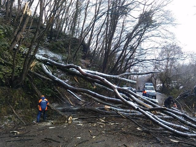 5 раз спасатели Южного регионального отряда МЧС выезжали на помощь автомобилистам, которым преградили дорогу упавшие на трассу деревья. В результате непогоды и выпадения обильных осадков была завалена деревьями и ветками лесная дорога к реке Бзыч в районе поселка Солохаул, также была перекрыта проезжая часть в сторону села Красная Воля и дорога к парку «Солохаул». Упавшими деревьями был заблокирован проезд в село Барановка через улицу Джапаридзе. Прибыв к местам происшествий, спасатели распиливали деревья и расчищали проезды к населенным пунктам.