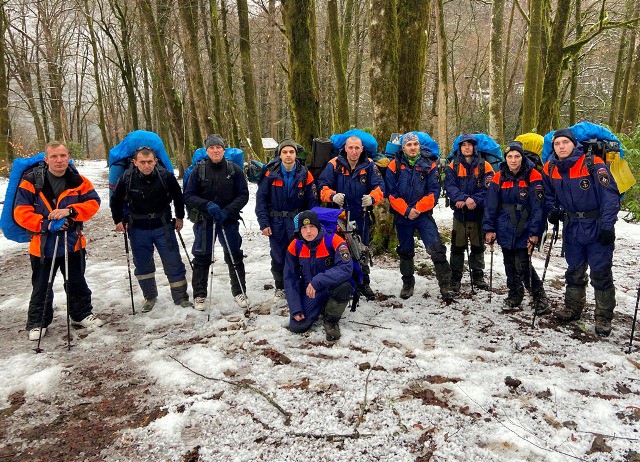 В тренировочном выходе было задействовано 14 сотрудников Южного регионального поисково-спасательного отряда. «Изначально мы разделили спасателей на две группы. Старшим первой группы назначили спасателя 2 класса Андрея Макаренко, второй – Олега Рубанова. У каждого из сотрудников была своя задача: одни прокладывали маршрут до горы Сахарная и первыми тропили подъем на вершину, другие выводили группу по карте через хребет Ажек и руководили тренировочными спасательными работами, — рассказывает начальник поисково-спасательной службы ЮРПСО МЧС России Евгений Белянский. – Также у нас был ответственный за связь с базой, при помощи спутникового телефона и радиостанций всегда вовремя выходил на связь с оперативными дежурными отряда».