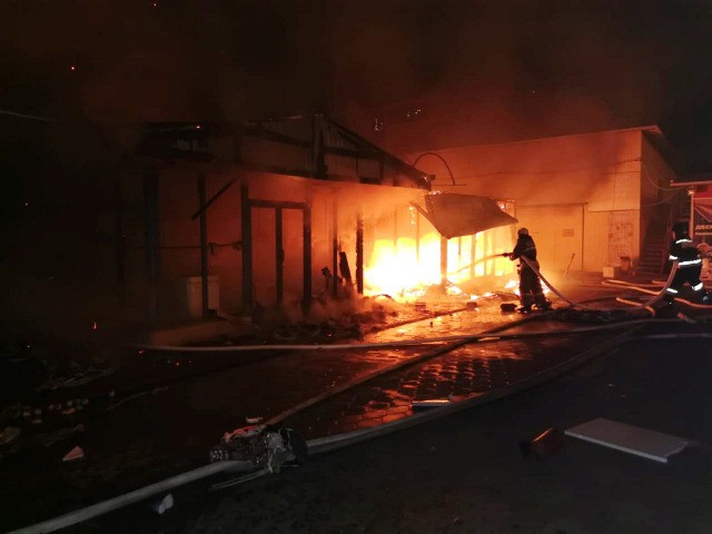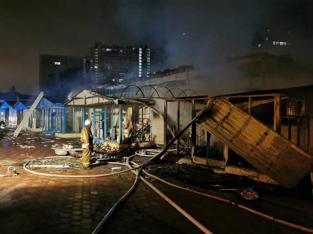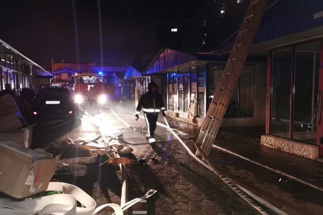 Информация о происшествии поступила в Южный региональный поисково-спасательный отряд в ночь с пятницы на субботу. Диспетчер службы «01» сообщил, что на площади 870 кв. м. горят торговые павильоны, требуется помощь спасателей.