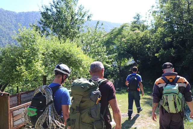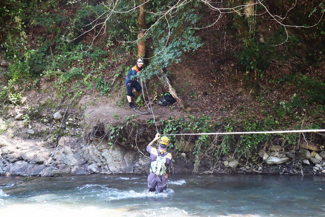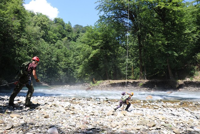— Работали две группы по пять человек. Первая группа улетала на слияние рек Ац и Сочи (высота около 300 метров н.у.м.) для проведения условных спасательных работ по поиску пострадавших и выводу их в район села Пластунка. Вторая группа – с этой же задачей высаживалась в районе горы Травяной Шпиль -высота 854 метра. Старшими групп были спасатели международного класса – Максим Дзагания и Сергей Кудряшов. Высадившись в лесу, спасатели ориентировались на месте при помощи навигаторов и карт. По расстоянию, которое преодолели группы, километраж был примерно одинаковый. У старших групп с собой были GPS-навигаторы, карты местности и спутниковые телефоны. Группы регулярно выходили на связь. Спасатели, которые шли от слияния рек Ац и Сочи, отрабатывали наведение переправы через горную реку, — рассказал начальник поисково-спасательной службы Южного РПСО МЧС России Евгений Белянский. – Всего в сборах по десантной подготовке приняло участие 63 сотрудника ЮРПСО. Спасатели показали отличные результаты и успешно справились с поставленными задачами.