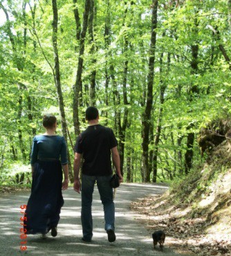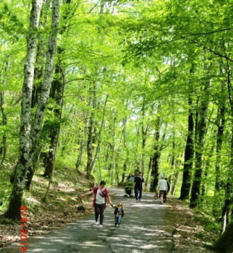 К чайным домиками подходим не по дороге, а по тропинке, через полянку для отдыха.