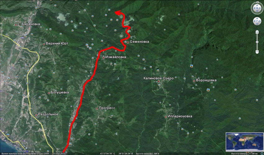 До Мацесты, на Краево-Армянское, там до Семеновки и по бетонным плитам через чайные плантации прямо никуда не сворачивая. Внизу через речку надо переехать ( не знаю как она сейчас после дождей)