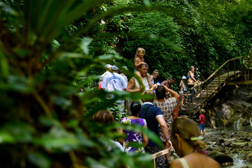 Обычная речка, не чего особенного в этом месте нет. Такое можно увидеть на любом ручье по всему побережью. А тут наверно еще и сидит там кто то и деньги за проход берет.