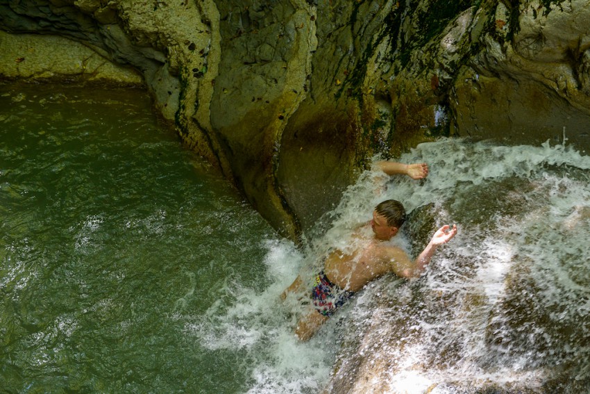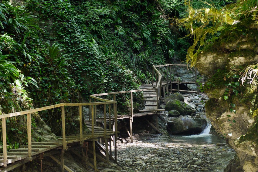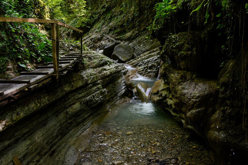 Неужели автору было лень написать пару абзацев в этом топике, которые бы всё объясняли? Это маршрут № 40, стр 89 Путеводителя по окрестностям Сочи " Отдыхай" — каньон " Прохладный". Там всё подробно описано. Читайте.