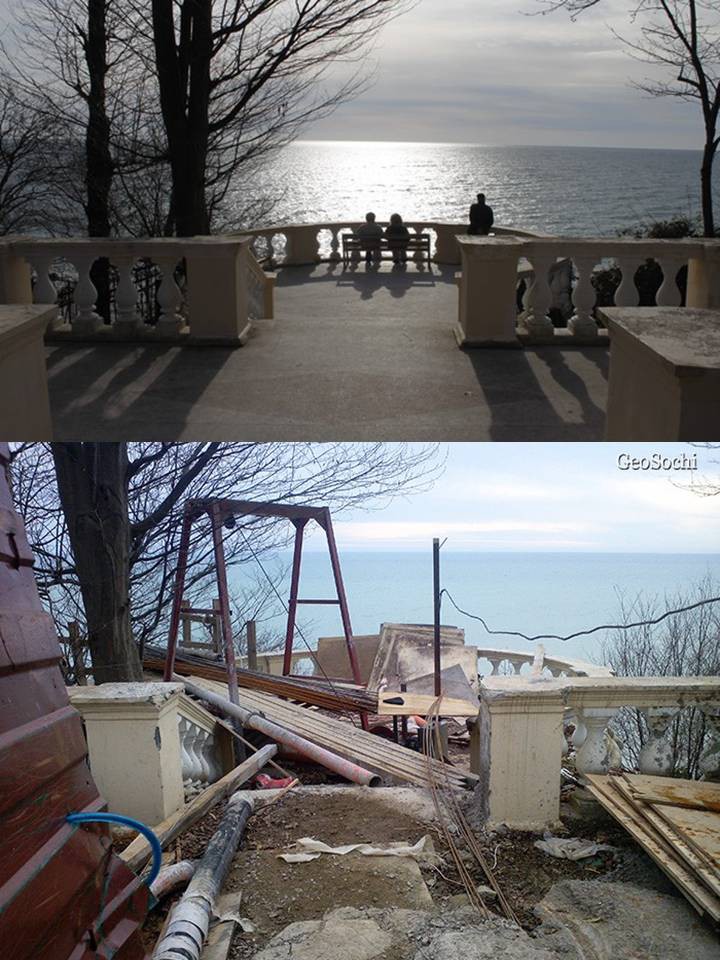 И вдруг за поворотом открывается что-то невероятное, совершенно не сочинский (нынешний) — открытый вид! Явная недоработка, есть ещё что загораживать.