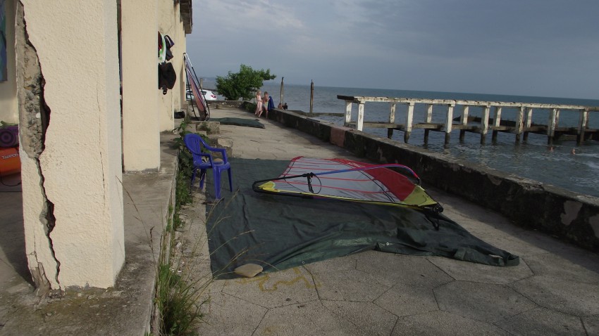 Я подходил ближе, с другой стороны: видны тюки с утеплителем, работа кипит. Охранник рассказал, что будет ресторан, как в былые времена. Отлично, схожу обязательно. Фотки ниже иллюстрируют процесс обучения виндсерфингу. Там теперь появилась станция — дают в прокат и обучают с ноля. Тоже хочу попробовать. Цены не озвучиваю.