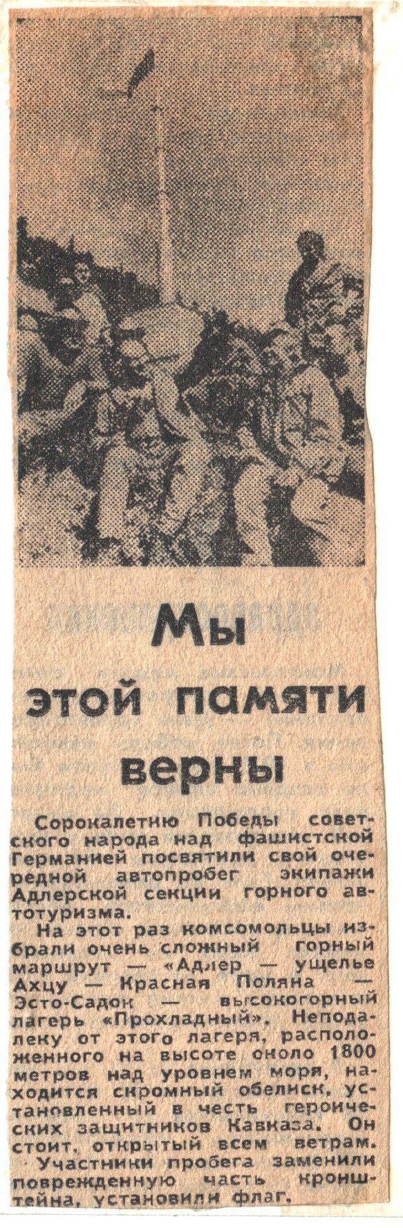 Нет. Это был пробег с Озера Рица на Красную поляну при участии Алманаха кинопутешествий и представителя завода ГАЗ. Со стороны Грузии от озера Мзи поднимались, далее Кардывач, Эгельмановы поляны и далее.