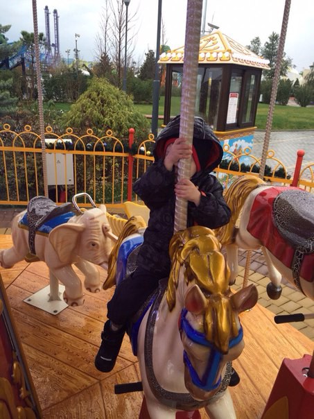 Моей основной целью было сводить его в усадьбу Деда Мороза. И нас не остановил ни дождь, ни ветер, ни то, что на входе нам сразу сказали: «Из-за погоды многие аттракционы не работают. А парк могут закрыть в любой момент». И уже никаких снеговичков вам, ни сказочных героев, разгуливающих по парку… Разве что Баба Яга побегала за нами. Хорошо ещё, что брат смелый мальчишка.
