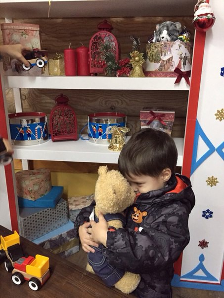 Внутри тепло и уютно. На полках лежат разные игрушки, чтобы детки играли с ними. С одной из них братик расставаться никак не хотел: «Я его уже люблю...».