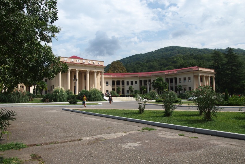 Местечко очень уютное, в окружении гор большая площадь, зелень и красивое здание, в лучших традициях сталинской застройки. Потом в приветовском поисковике нашел вотэто.Ну, повод для праздника как минимум — необычный).