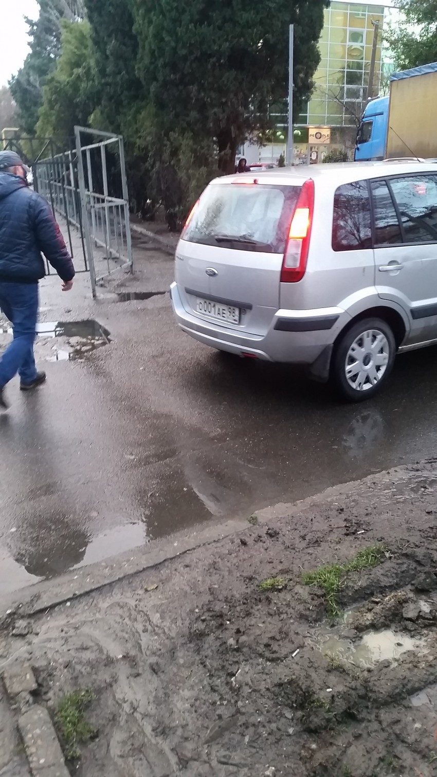 С коляской или за руку с ребенком пройти не возможно, люди с детьми вынуждены идти по проезжей части.