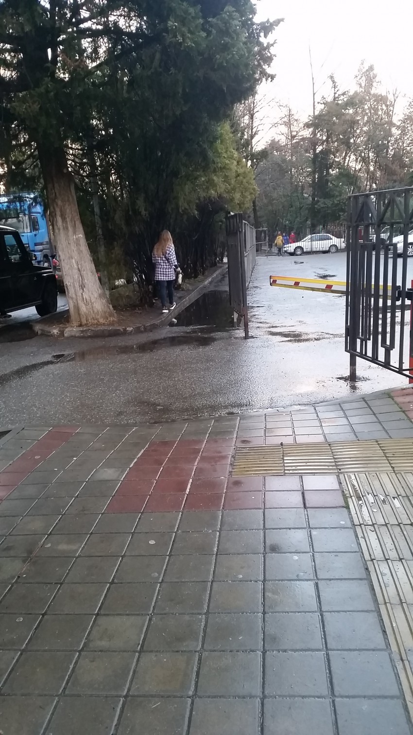 Сначала там поставили просто шлагбаум но ему тут же сломали стрелу. Затем они перетащили забор и вкопали его в асфальт!