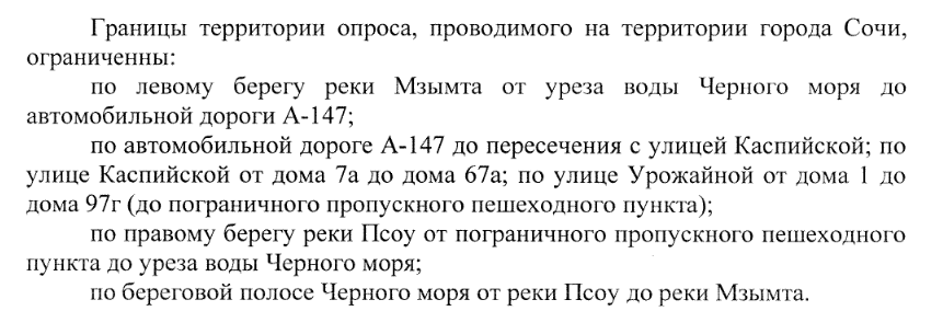 Почему не ограничили железной дорогой и федеральной трассой — загадка. Видимо численность населения хотели поднять за счет ЖК «Урожайный» и «Фрукты», которые также вошли в состав Сириуса. А вот ЖК «Летняя резиденция» не вошла и осталась в селе Веселом.