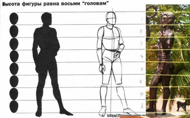 Да что вы! Никаких отличий от канонических пропорций, подогнанных вами выше. Странно, почему разные стили существуют в искусстве… Работали бы все в классицизме и соцреализме — и было бы здорово, и неча народ смущать :)