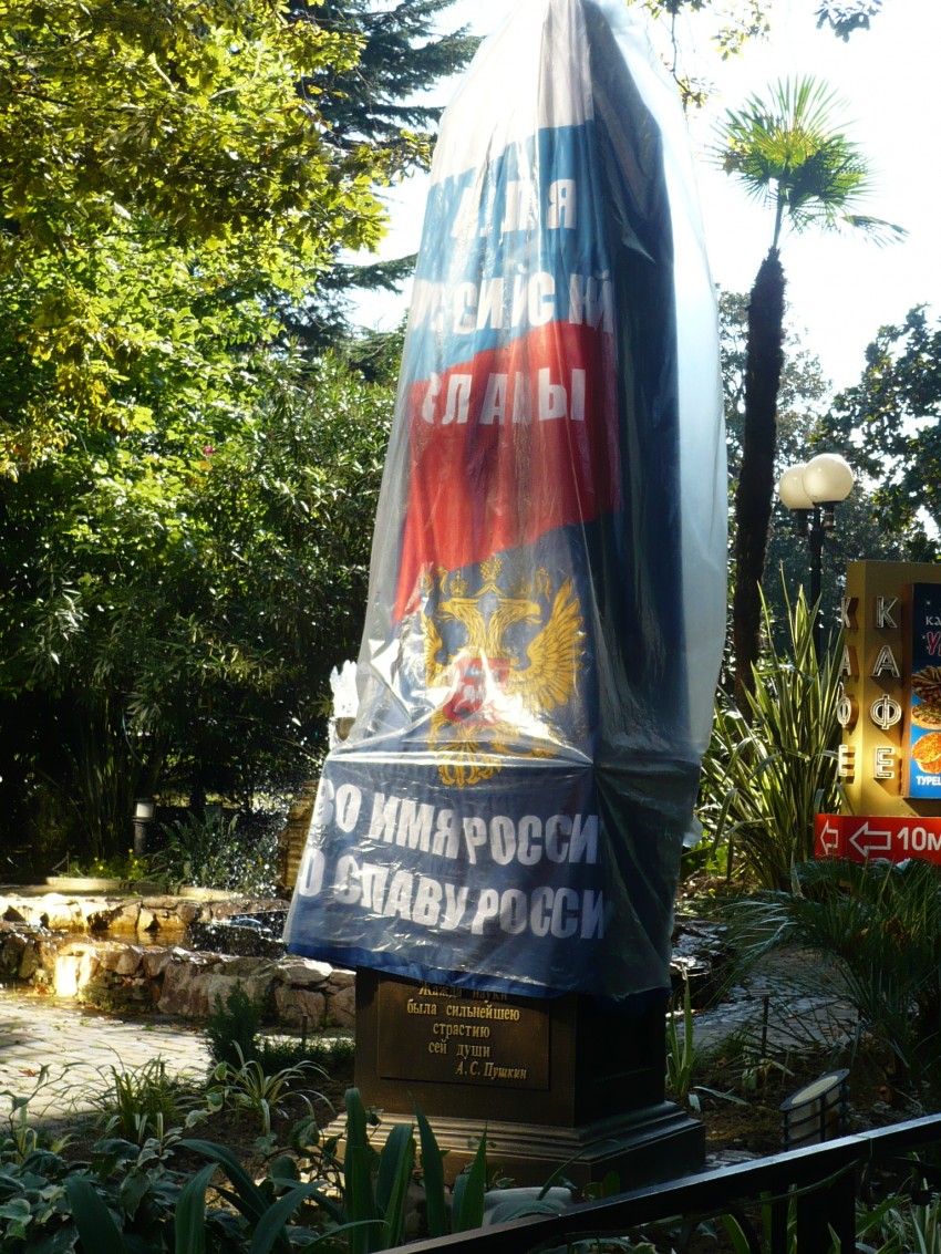 Увы, город уже засран до предела, не только статУями, а вообще, сами знаете чем. Эти статУи — капля в море, отражающая общее состояние города. Как кто-то метко выразился, «Сочи — это место, где бездарность и безразличие слились воедино».
