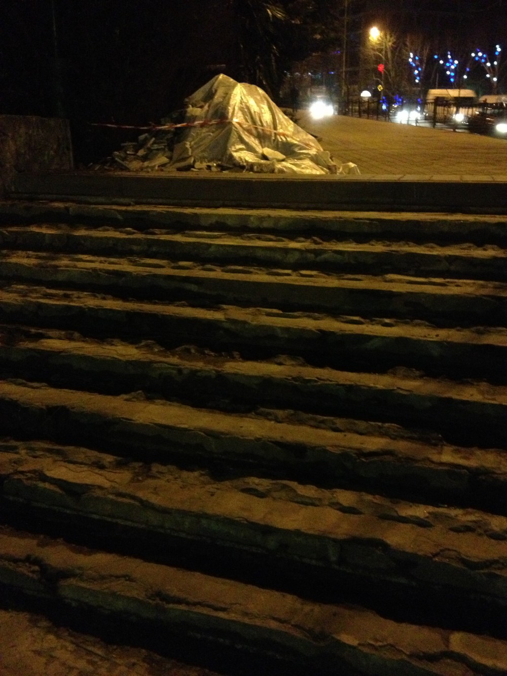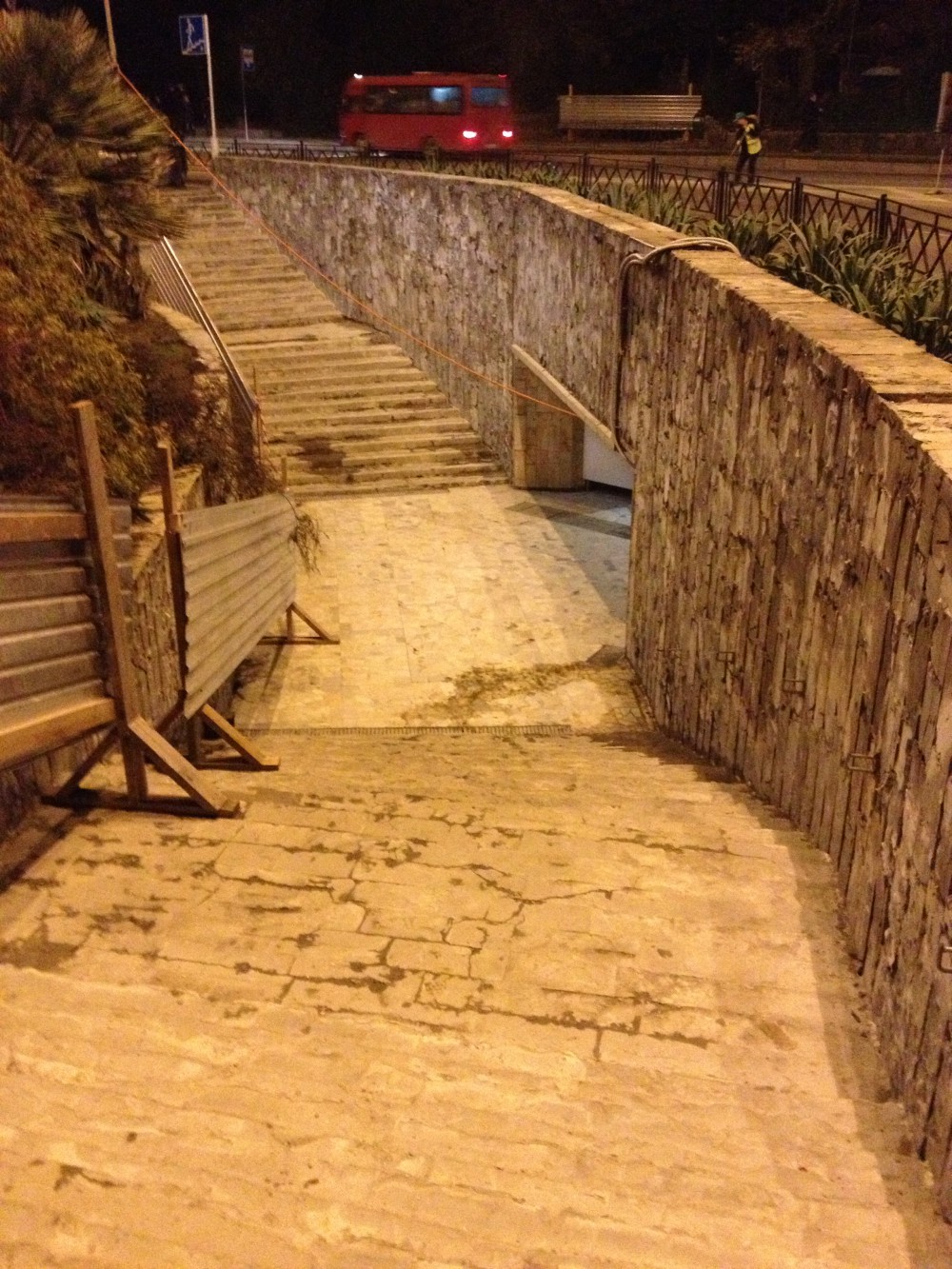 Хочу написать несколько строк о подземном пешеходном переходе возле гостиницы Москва. 2,5 недели назад, со ступенек была снята плитка, которая лежала там со времен СССР, но при этом хорошо сохранилась. Работы по демонтажу, «умелые мастера» провели за один день, но класть новую плитку никто не спешит…