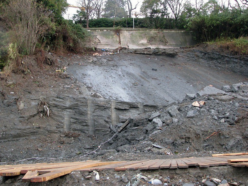 На фото типичный структурный склон (склон совпадает с залеганием пород) и срыв коренных пород по напластованию. Причина этого оползня более чем типична для Сочи и хорошо видна на фото, это некомпенсированная подрезка склона. Точка.