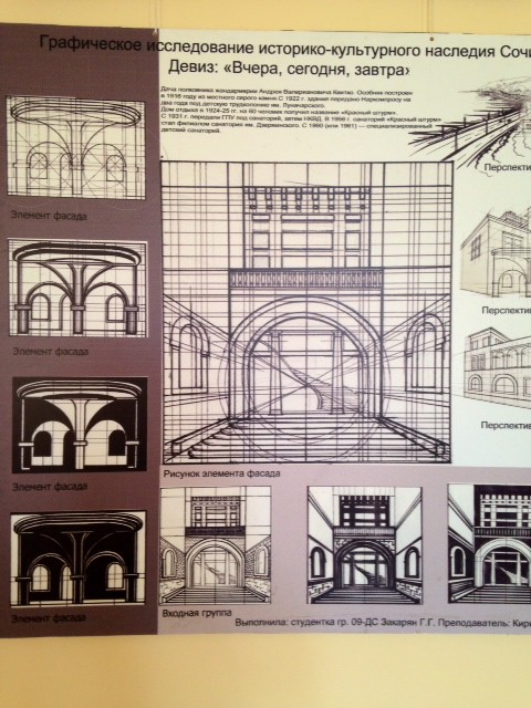 Основная часть экспозиций и сейчас пребывает на местах, но некоторые залы постоянно обновляются. Одним из интересных обновлений, на наш взгляд, получилась V отчетная выставка курсовых и дипломных работ «Сочи – гостеприимный город», в которой студенты московских и сочинских архитектурных и дизайнерских вузов показали, каким им видится наш город.