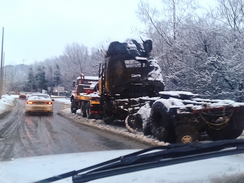 Вообще трудно сказать насколько быстро и оперативно справились коммунальные службы с учетом большого количества аварий и брошенного транспорта, но Мамайский перевал был почищен довольно сносно. Только стоял одиноко на подъеме сожженный «грузовой строитель олимпиады»