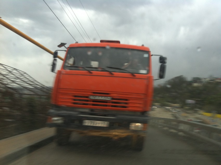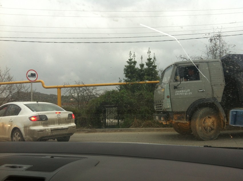 День прошел, а камаз так и не убрали, дорогу сейчас вообще перегородили со стороны кладбища еще одним камазом — поставили его посреди дороги, чтоб никто не смог проехать и сидят (гаишники) в своей машине, наблюдая, как люди мучаются, разворачиваясь на пятачке. А догадаться установить на въезде к кладбищу какой-то указатель или написать, к примеру, что проезд через Шаумяна закрыт, не судьба…