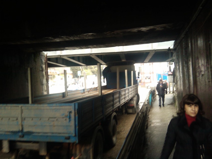 Вчера там же, при мне, небольшой рефрижератор с абхазскими номерами встрял- холодильник зацепился за этот мост. Ну не верю я, что там-3 метра. Если такие случаи регулярны, почему не сделают такое же углубление, как под старым мостом?