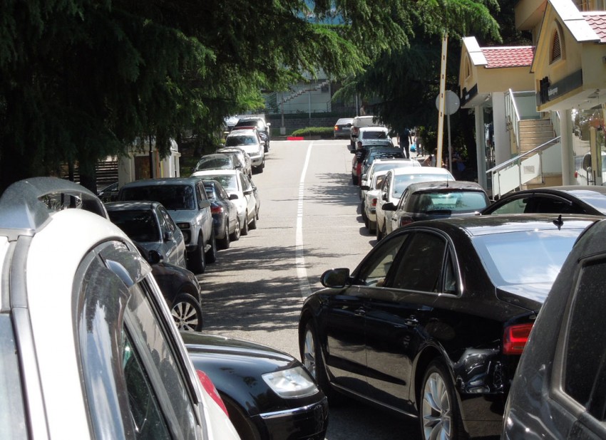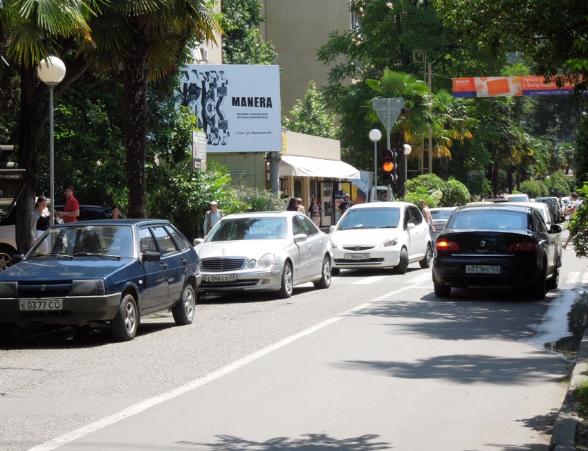 или на перекрёстке Воровского и Парковой. Мерседес с блатными номерами запаркован так неудачно, что гарантирует большую пробку на долгое время. Не место там ему.
