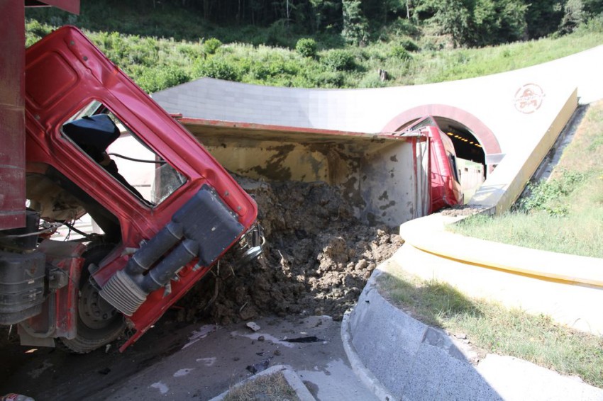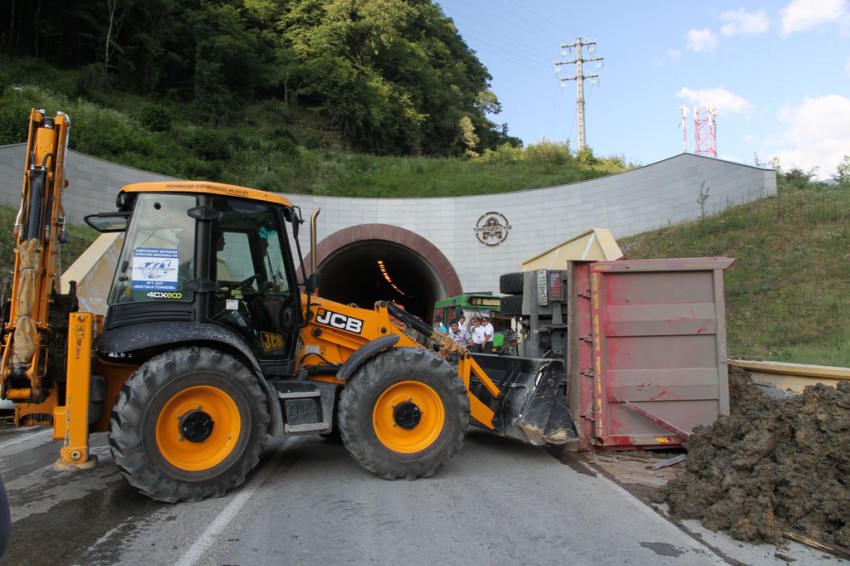 который с землёй тяжёлый как опрокинулся не понятно, бок вроде не особо помят, что за удар. про автобус тоже не очень понятно кроме того что водитель удар на себя взял… бензовоз «в стенке в тоннеле торчит»… то ли тормозил и чтоб не догнать их в стену пошёл… сначала начал народ распрашивать зевак, потом выслушав с десяток разных «правильных» версий — решил здесь не пересказывать их, ничего не понятно. ясно одно ДТП с стройтехникой все больще и больше…