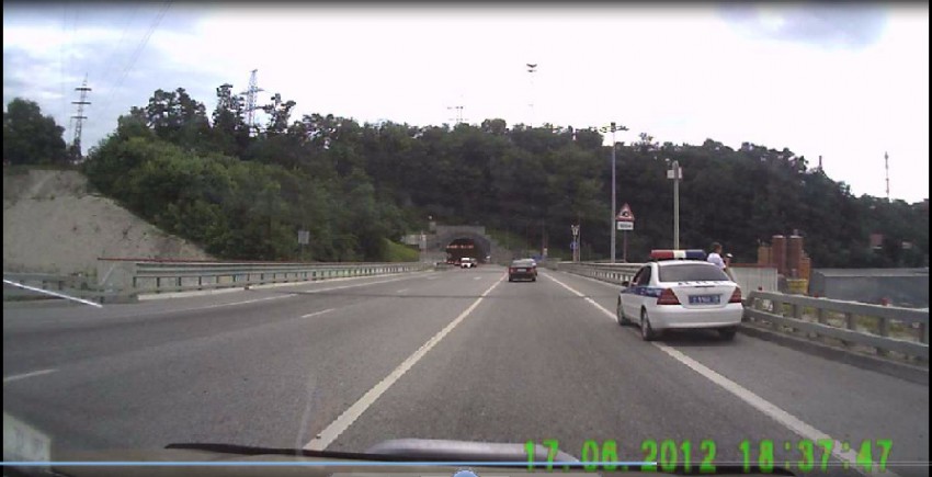 Сочи, объездная дорога, ТЭЦ, вечер. Правая сторона полосы разбита. Большинство водителей выезжают на встречную полосу, объезжая ухабы, и, стоящего наверху с камерой полисмена, не видят. Я его тоже не заметил (смотрел на дорогу), о его существовании мне подсказала жена, сидящая рядом.