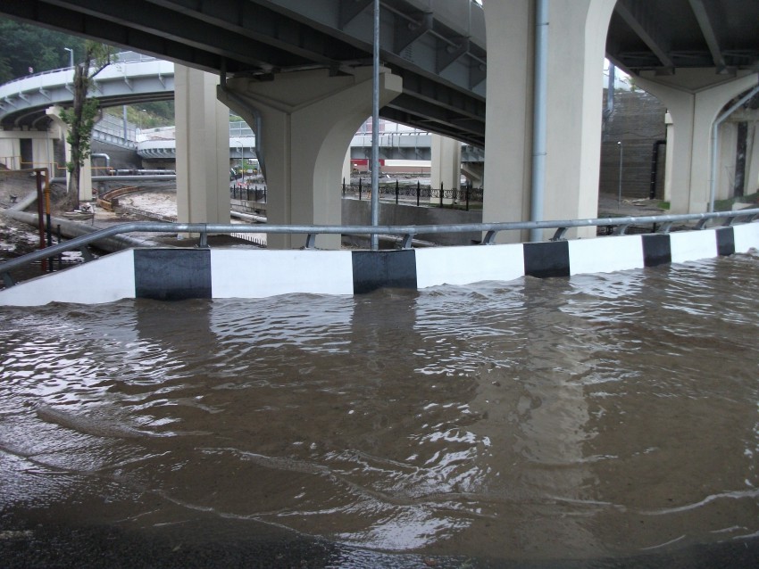 Сегодня после града ехал домой и был весьма удивлён чудом инженерной мысли, которая прямо била ключом на новой развязке Стадион. Просто не смог снять положение дел на её вьезде со стороны Раздольного, там творилось вообще нечто!!! Вода шла рекой, я на Ниве поднимая ощутимые волны сквозь поток повернул под мост, и что увидел!!! У стадиона была глубочайшая лужа!!! И вода никуда не уходила!!!