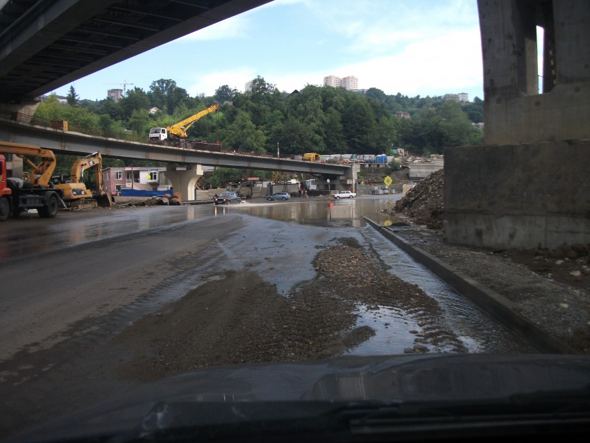 Когда этот чудо проект только начинался, тогда жители данного развязочного района задавали этот вопрос.ЧТО БУДЕТ С ЛИВНЕВЫМИ ПОТОКАМИ! Сейчас вся вода благополучно стекает с горки прямо перед мостом на школу!