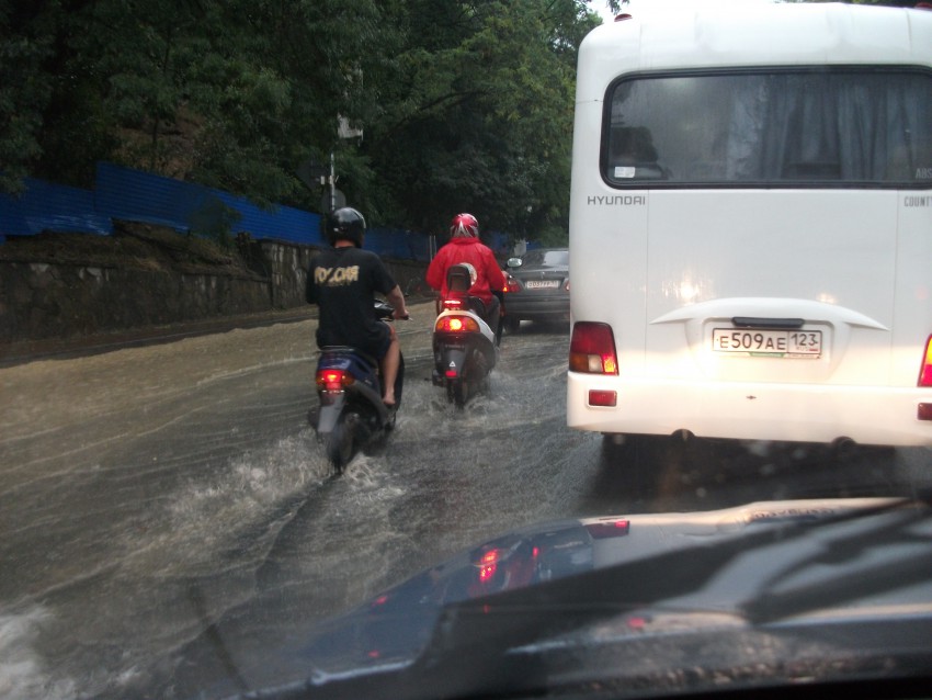 «С 7:00 мск до 15:00 мск в Геленджике выпало 99,4 мм осадков — это 2,5 месячная норма. Сегодня еще в ближайшие 2-3 часа будут сильные осадки, потом ослабеют. Дождь будет сохраняться до ночи. Завтра тоже будут осадки, но кратковременные и не такие интенсивные, как сегодня», — сообщил агентству «Интерфакс-Юг» начальник Краснодарского краевого центра по гидрометеорологии и мониторингу окружающей среды Юрий Ткаченко.