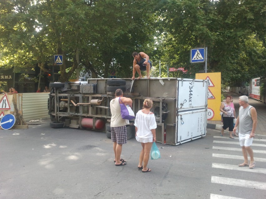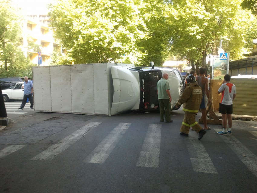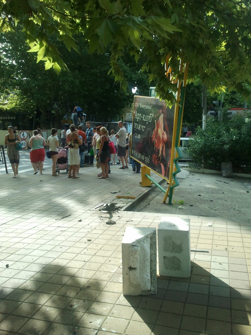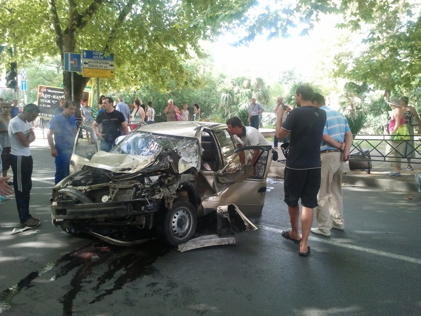 Только я проехал перекресток Орджоникидзе/Соколова и за моей спиной все произошло. Дэу Нексия 67 регион двигалась по ул.Соколова от Курортного проспекта, по словам очевидцев с явным превышением скорости, и на перекрестке он решил свернуть на Орджоникидзе против шерсти, в сторону восьмого неба, но сделать это ему помешала двигающаяся по главной грузовая Газель, которую Нексия зацепила и Газель от этого перевернулась. Далее Нексия вылетела через пешеходный переход на тратуар и через него вылетел обратно на дорогу. По пути снес рекламный щит, перила и женщину с ребенком. Женщина отделалась царапинами, ребенок просто испугался, стоявший рядом таксист сразу увез их в больницу.