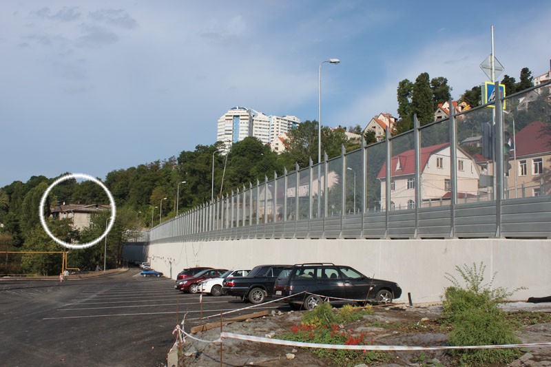 Но если посмотреть из окон первых трёх этажей этого дома, обращённых в сторону автодороги, то буквально в трёх метрах от окна будет подпорная стена (бетон).