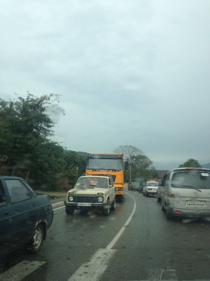 Что интересно, по новой трассе, из Адлера в Молдовку, стоят десятки грузовиков и им не дают ехать.