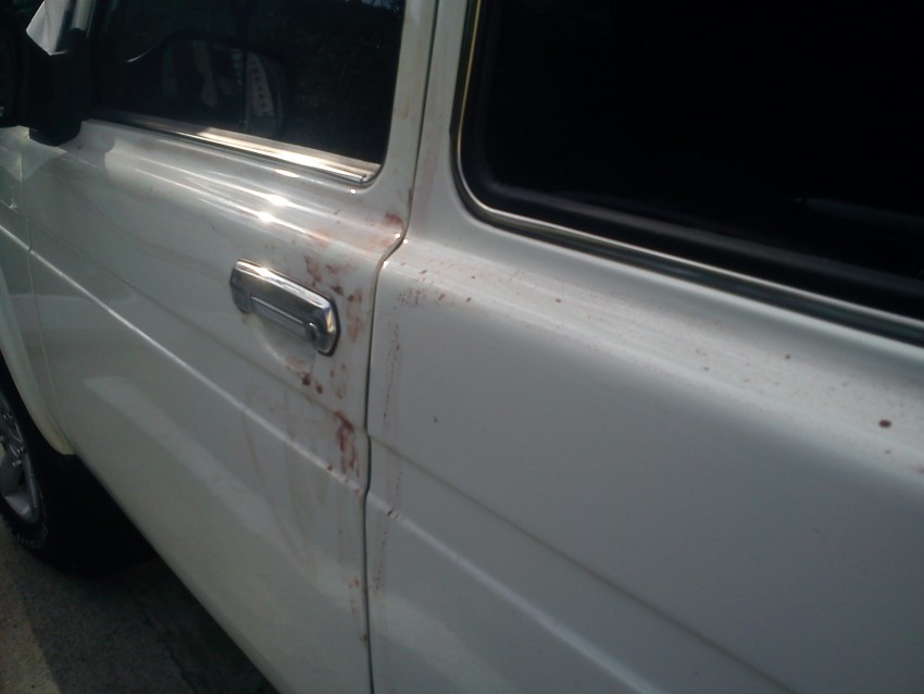 Очень жаль того кто попал под колёса этого выродка :(( Я видел эту машину в городе, по поведению на дороге понял что чмо с ксивой… Судя по повреждениям досталось пешеходу (((