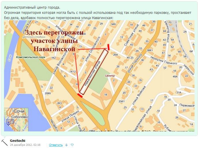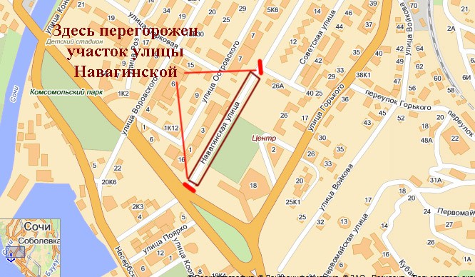 Если открыть Навагинскую в одностороннем режиме, по направлению к порту, то многие, кому надо на Виноградную по большей части не полезут на перекрёсток Горького-Курортный. А если набраться смелости и пойти дальше, соединив Навагинскую с ул. Парковой, пожертвовав, не думаю, что уж очень ценным строением