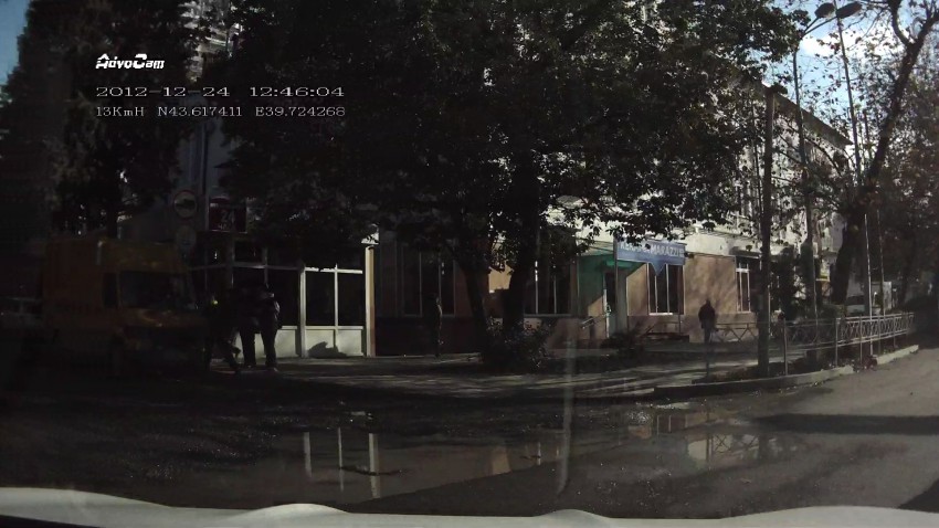 Ну и выезд, подтверждаю. Слева — порог пандуса (нужно прижиматься правее), справа — огромная яма (нужно прижиматься левее).